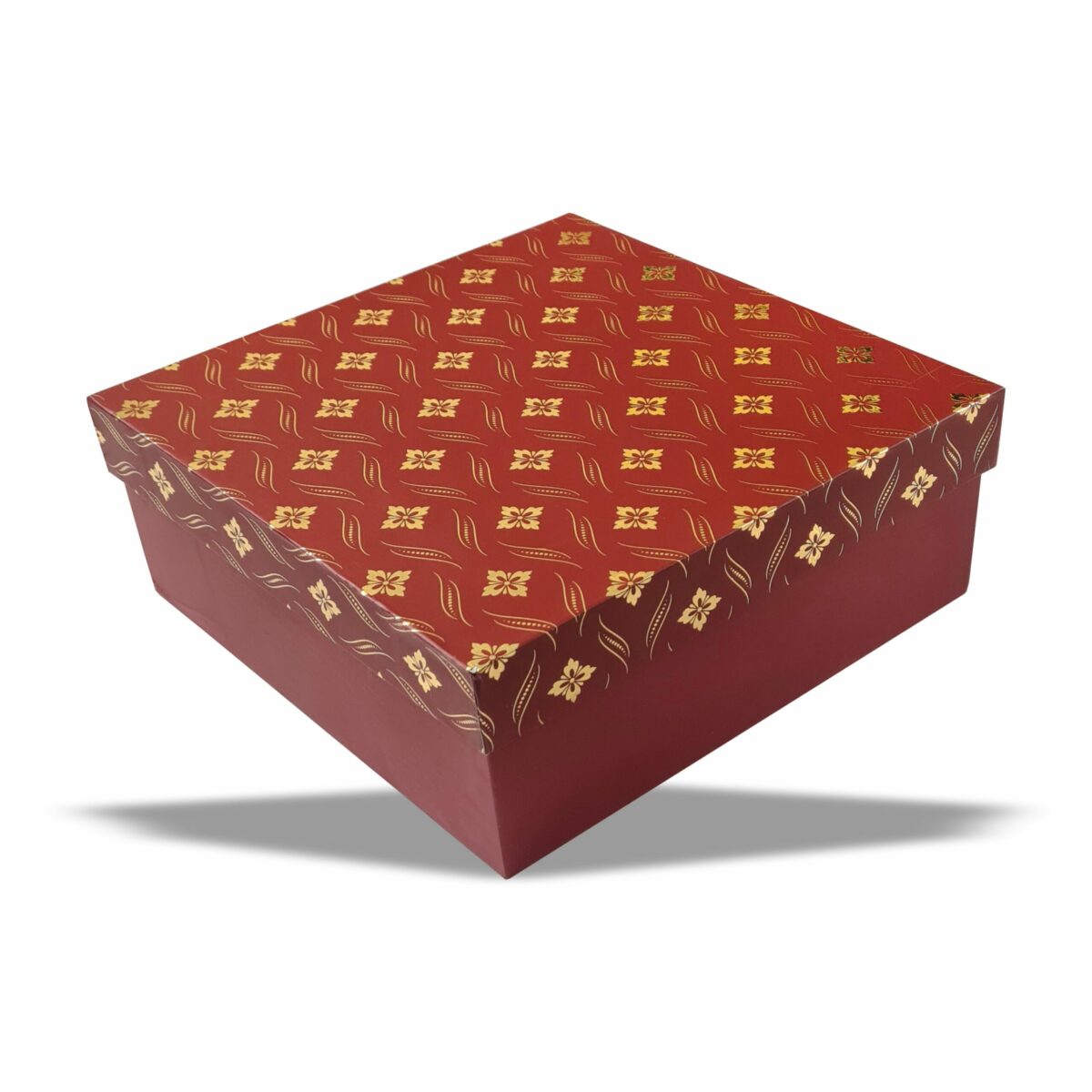 Brick Red : Gold Foil Rigid Hamper Box (10x10x3 inch)