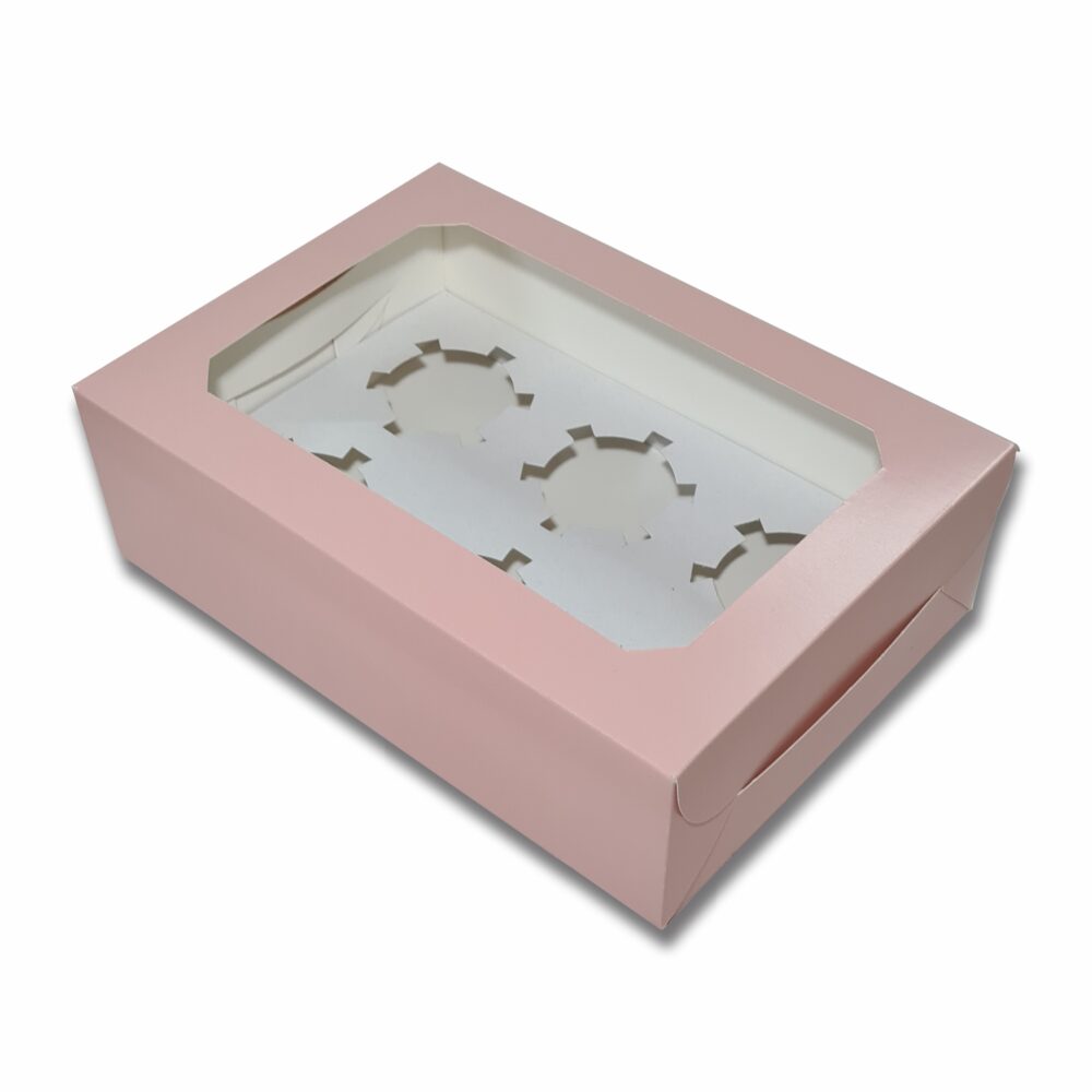 Peach Flat Cup Cake Box 6 Cavity (10x7x3 inch)